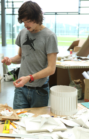Meine Herangehensweise mit den Studenten umfasste Kreativtechniken, eine spielerische Gewöhnung ans Material (Flugversuche), die Gestaltung der neuen Produkte, sowie das Dokumentieren der Arbeiten in Form einer Austellung in den vorhandenen Räumlichkeiten der Eunique Designmesse.